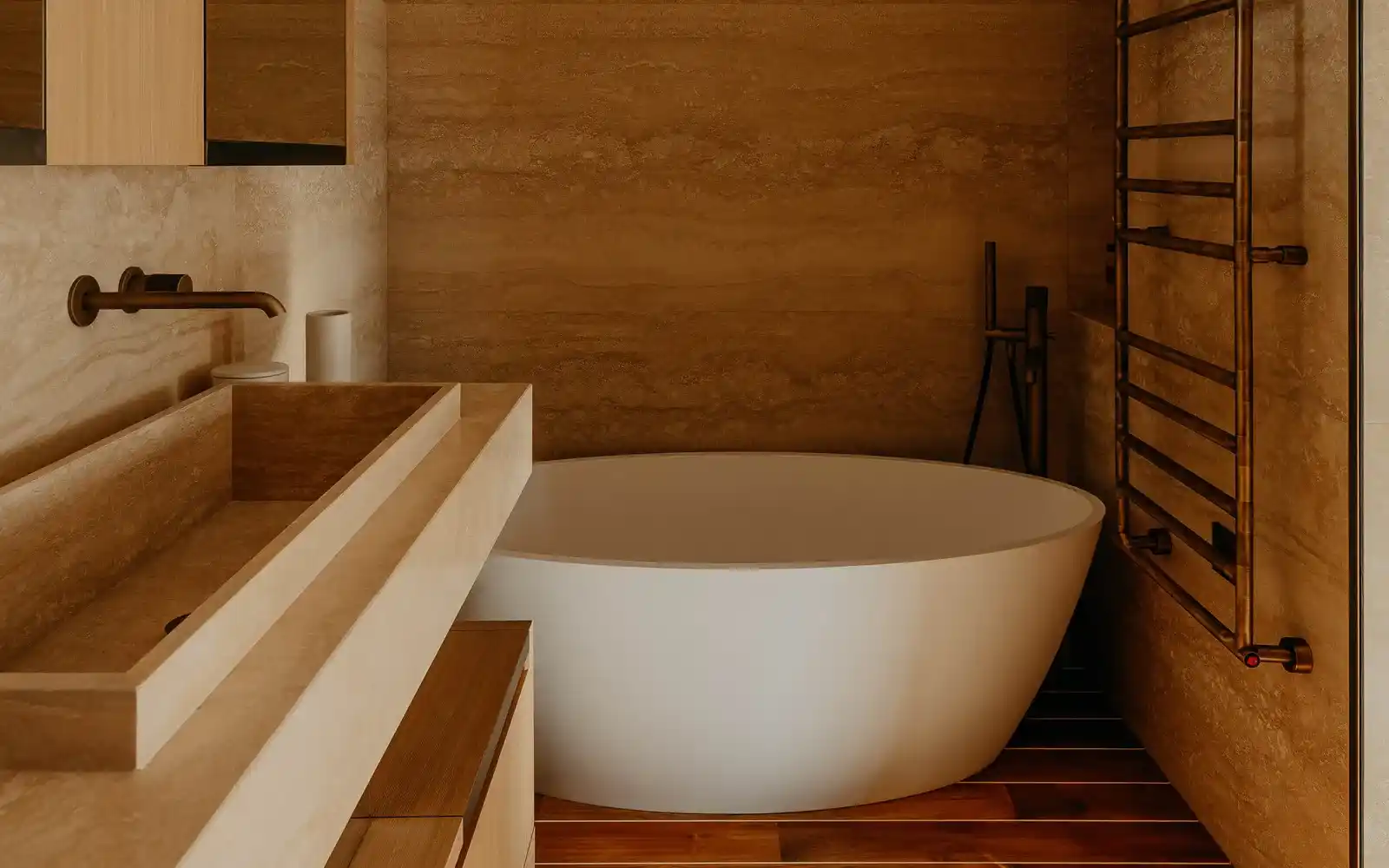 En 2026, on laisse de côté les angles droits et on privilégie les lignes plus arrondies et les formes fluides. Les miroirs prennent des formes organiques et des lignes ondulées. Il en est de même avec les vasques et la baignoire, elles revendiquent un design aux courbes enveloppantes. Ici, la salle de bain se veut accueillante et pleine de délicatesse pour une atmosphère très douce. Une palette de couleurs chaleureuse est la plus appropriée pour apporter cette douceur : beige, sable, rose pâle ou gris et même les tons pastel. En termes de matériaux, le naturel se marie parfaitement avec cette ambiance chaleureuse. On opte ainsi pour du bois, du rotin ou du liège. Pour apporter une touche de bien-être, un brin de végétation est le bienvenu.